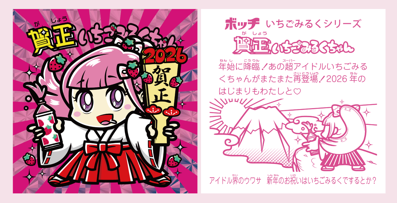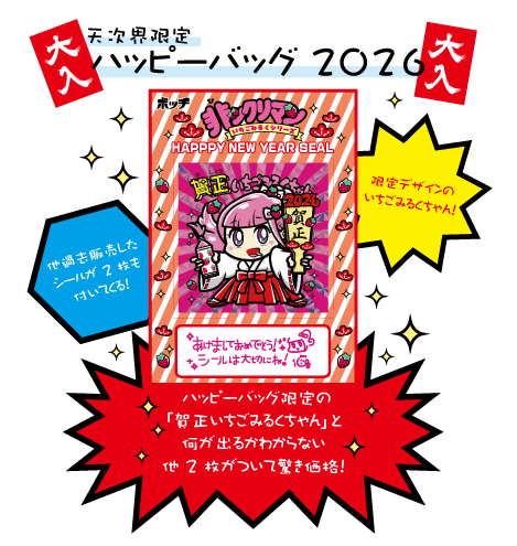 過去のシール2枚(ブラインド)+賀正いちごみるくちゃん(おまけ)の